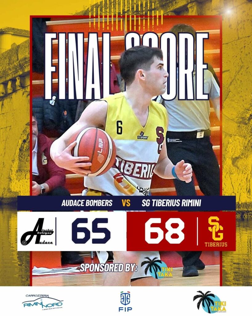 Il buzzer beater di Bonfè fa esplodere di gioia Tiberius. Un quarto parziale perfetto permette ai ragazzi di Rimini di rientrare dal -16 ed avere la meglio su una coriacea Audace Bombers.