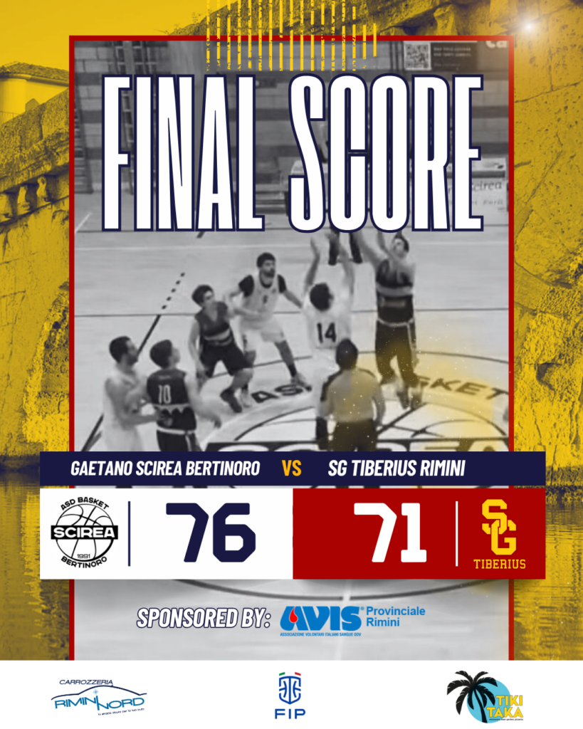(21-17; 52-38; 65-57) 👉SG Tiberius: Del Fabbro 7, Gamberini 19, Bonfè ne, Nuvoli 16, Antolini F., Chiari 7, Campajola 9, Bracci ne, Benzi 4, Casadei, Bernabini 9. All. Brienza Ass. Serpieri-Pasquini 👉 Gaetano Scirea Bertinoro: Manzi ne, Zanetti ne, Torelli 11, Piazza 8, Agatensi 10, Panzavolta 19, Angeletti 9, Stefan ne, Bellini, Biandolino, Palazzi 5, […]